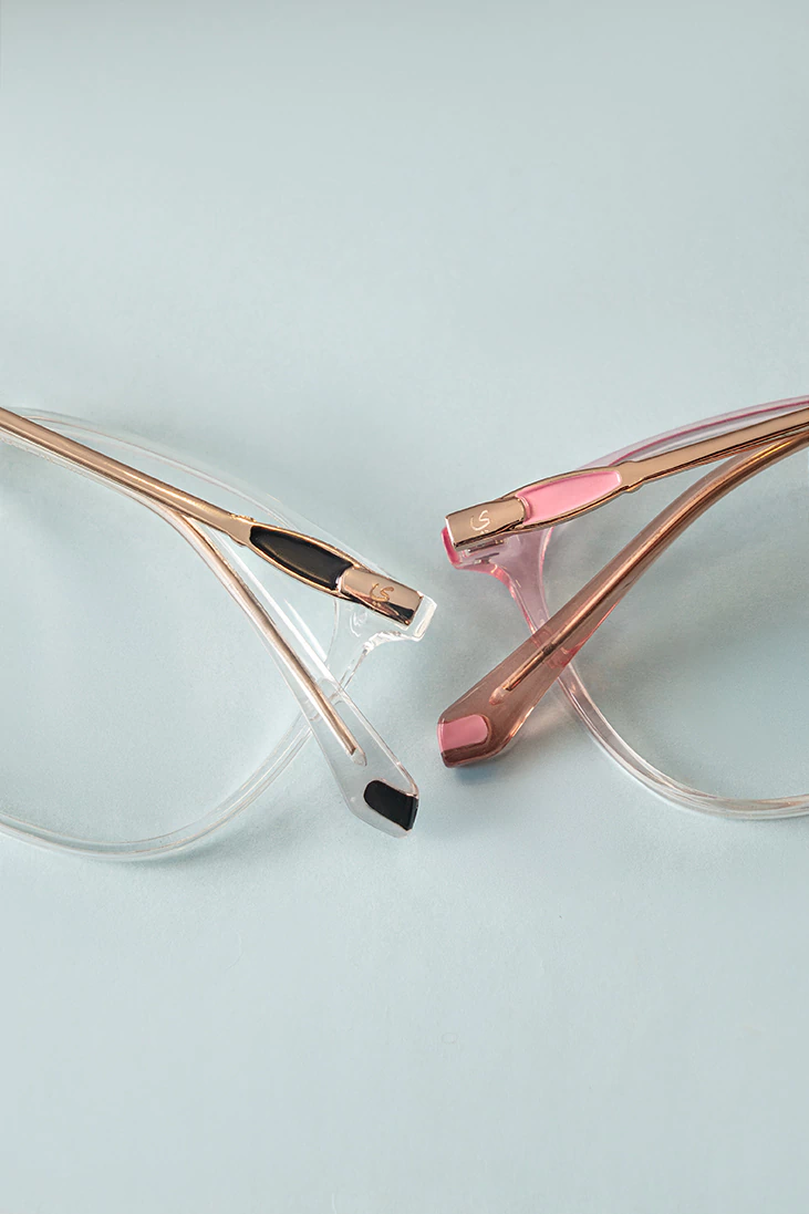 Armazon de acrilico, bisagra flex. Terminal de acetato regulables.